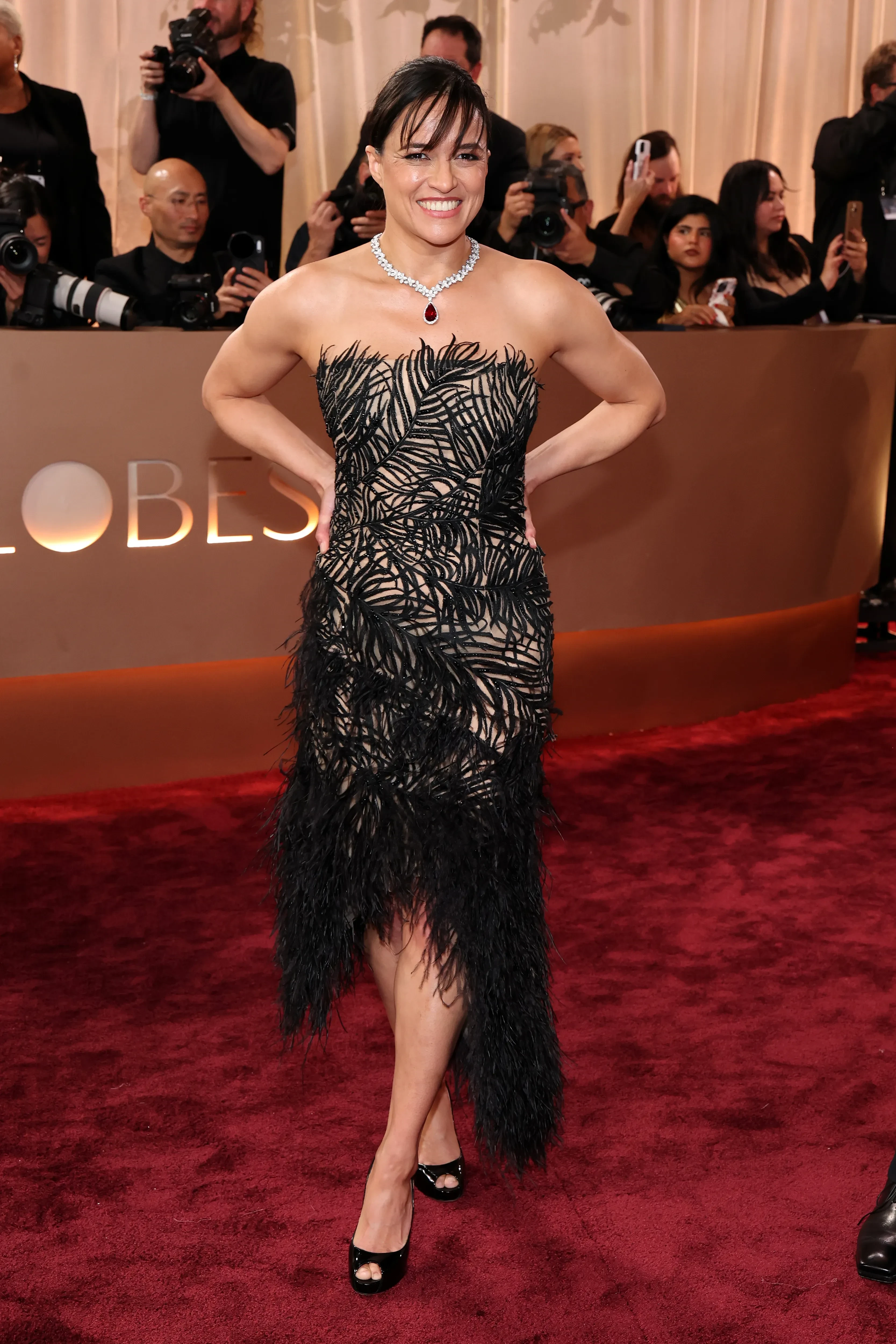 46-летняя Кейт Хадсон блистала на дорожке в серебристом платье Аrmani, а Дженна Ортега появилась в готическом образе от Dilara Findikoglu. 27-летняя Эль Фаннинг надела голубое платье Gucci, а 31-летняя Дакота — Vivienne Westwood. Возлюбленная миллиардера Владислава Доронина посетила премию в платье Ralph Lauren с декольте.