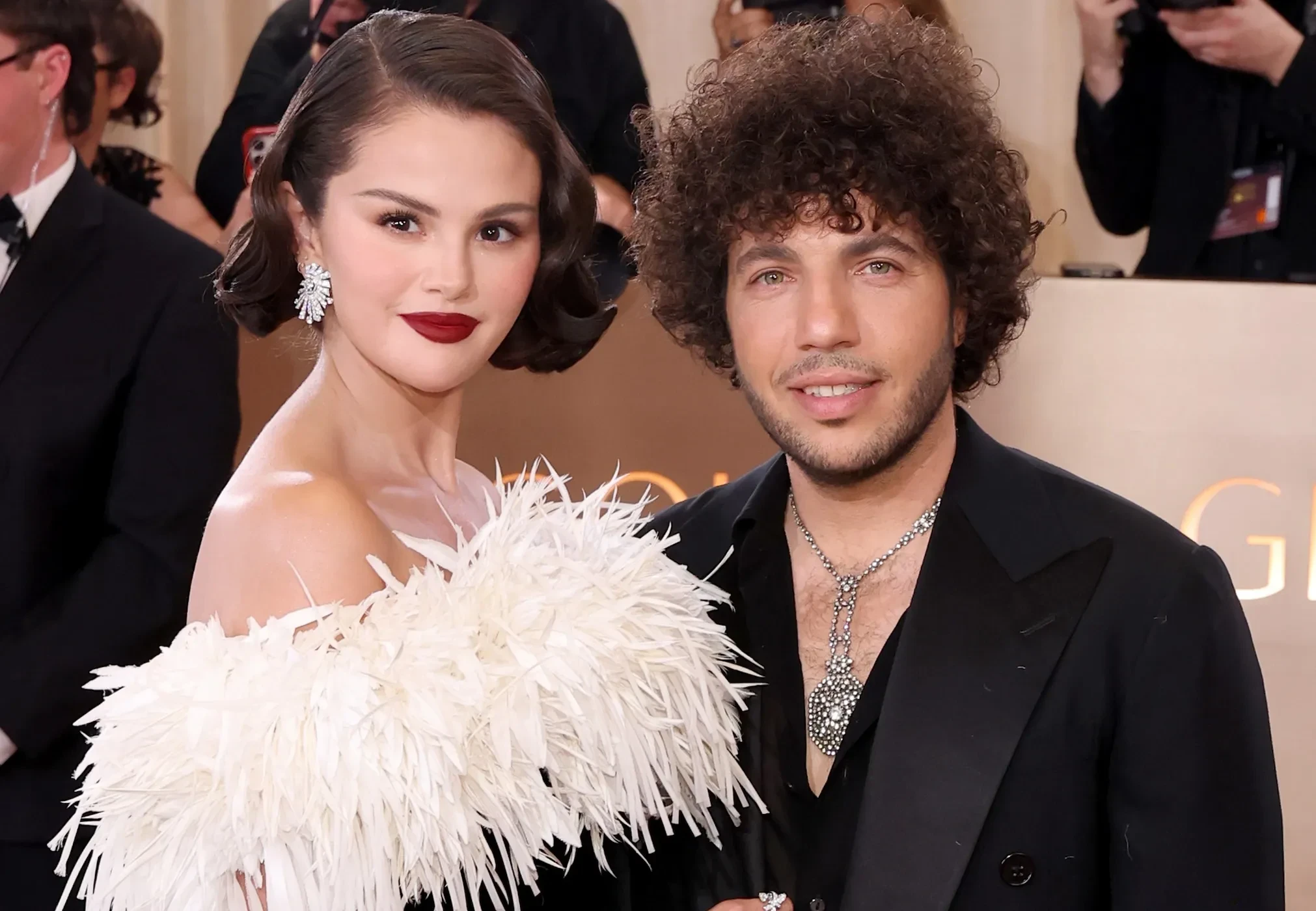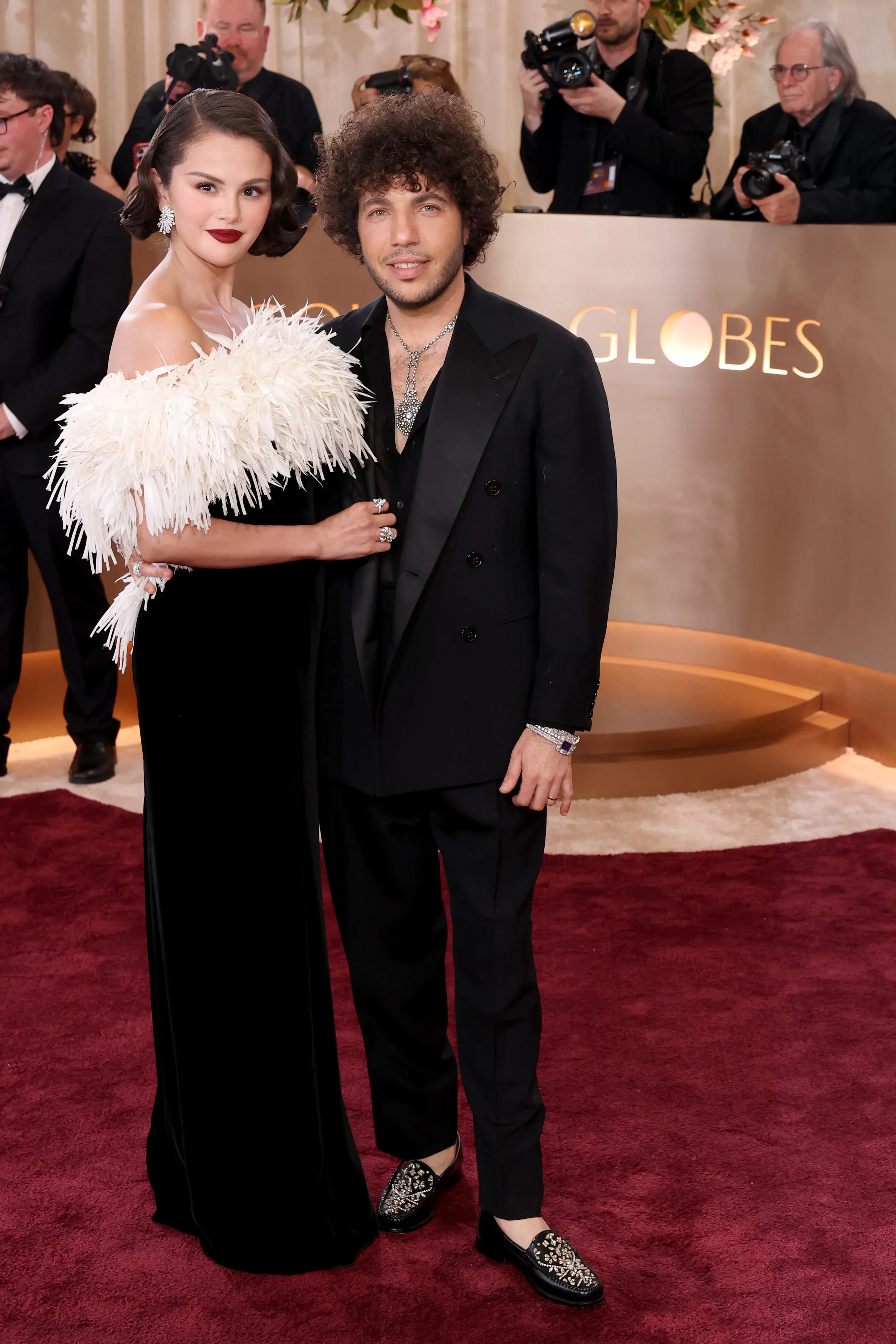 "Золотой глобус — 2026": Эмма Стоун, Селена Гомес и Бенни Бланко, Дженнифер Лопес, Леонардо ДиКаприо на красной дорожке