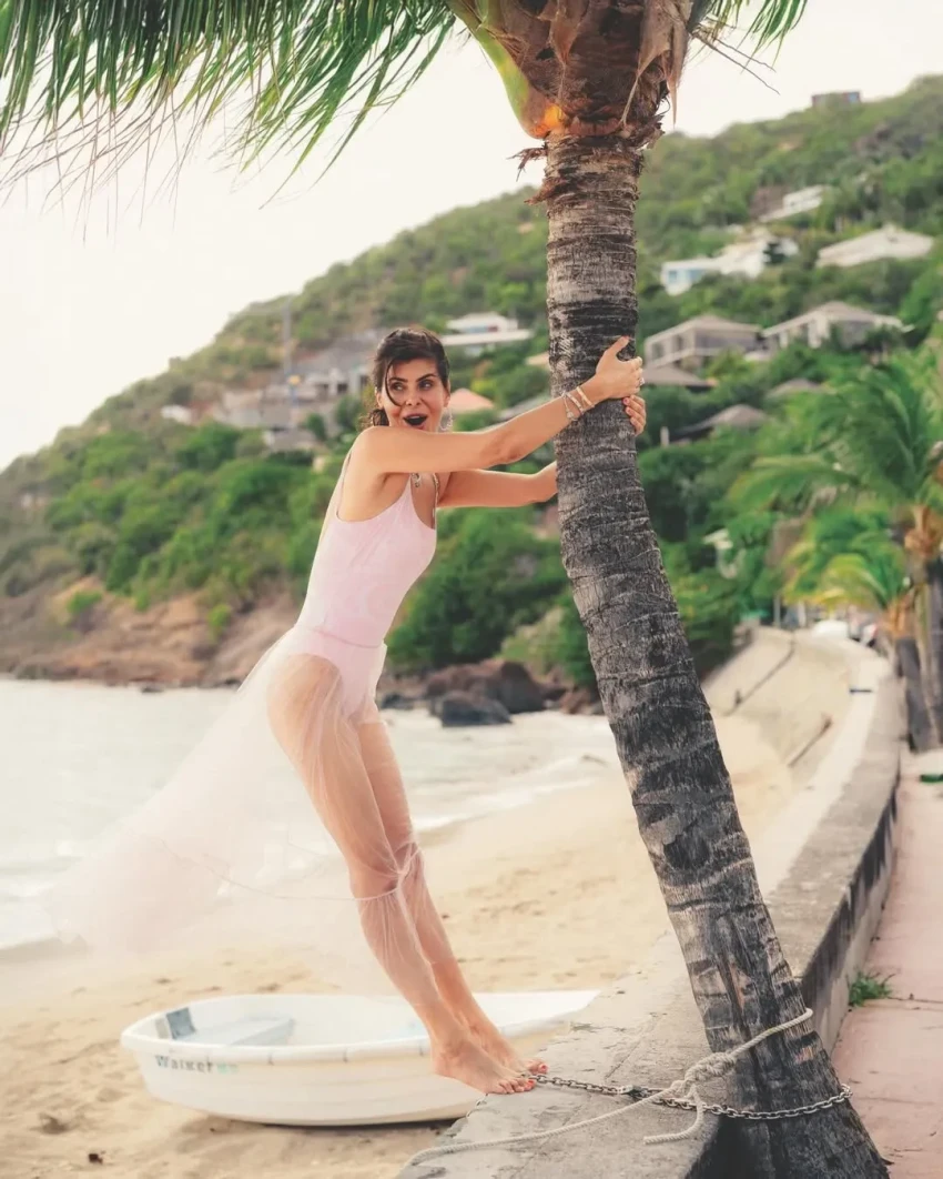 На фото Оболенцева позирует в купальнике Chanel и прозрачной юбке на острове Сен-Барт, где пара год назад сыграла свадьбу. "Любовь — это пятое время года. А.А.А.", — подписала фото Надежда.