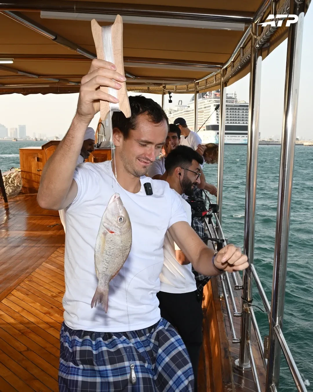 Перед тем как спортсменам провели инструктаж, они облачились в одинаковые наряды из белых футболок и клетчатых фут (мужская юбка, распространённая в арабских странах. — Прим. ред.). В противовес страстям на корте, улов удался у всех. "Это не ИИ, а просто парни, которые рыбачат в старом добром катарском стиле", — с юмором подписали организаторы пост.