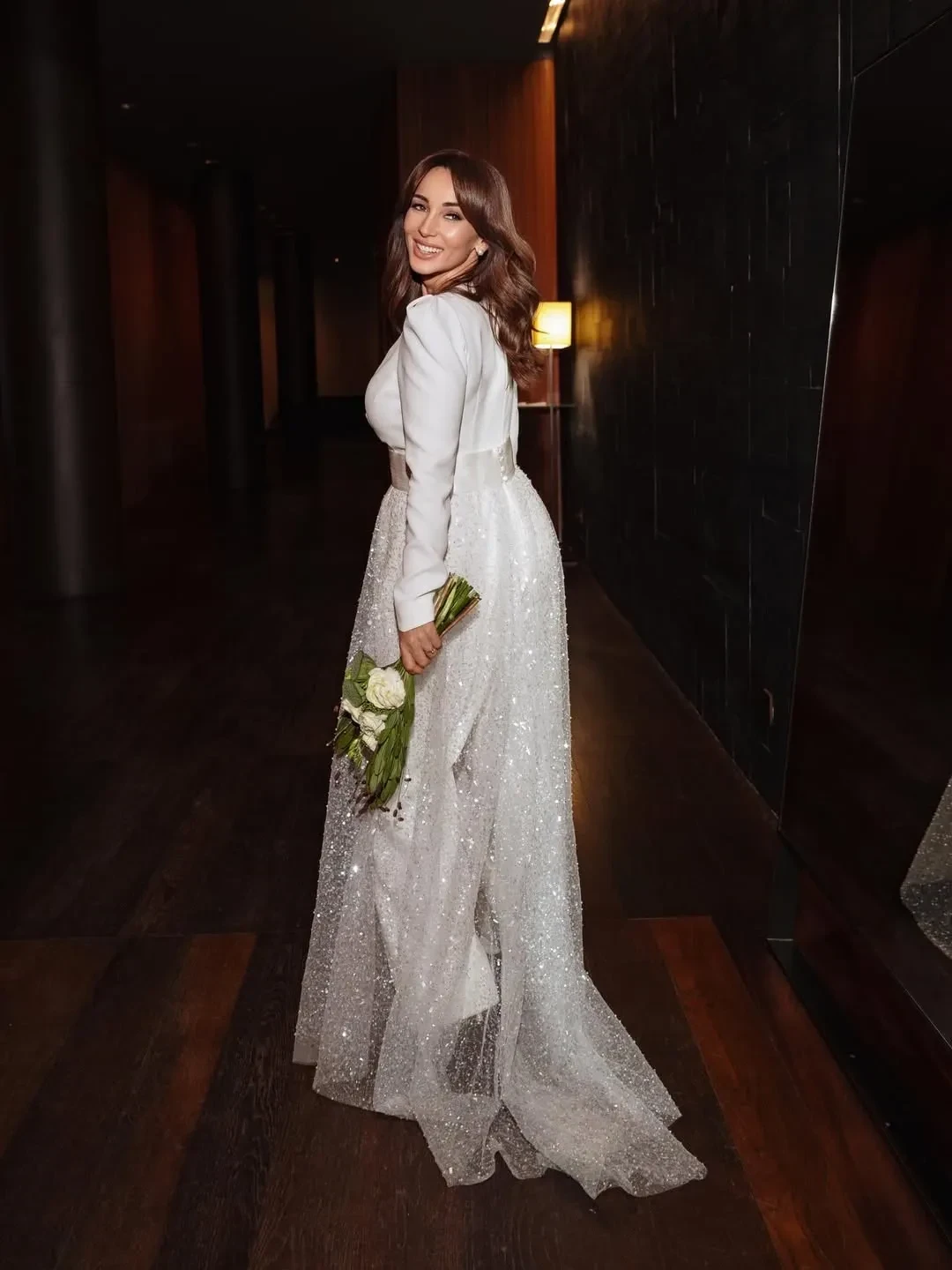 Анфиса Чехова и Александр ЗлатопольскийАнфиса Чехова и Александр ЗлатопольскийФото Анфисы ЧеховойНа роспись в ЗАГСе ведущая пришла в белом комбинезоне бренда Ammonit, а на вечеринку переоделась в платье Magirani с декольте. В начале празднования жених и невеста станцевали танец молодожёнов под хит Селин Дион All By Myself, а после отмечали с гостями и тамадой.