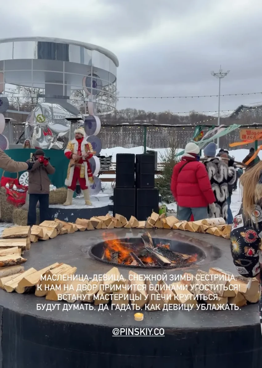 43-летняя Анна Седокова в короткой белой шубе и лосинах пришла на Масленицу вместе с сыном Гектором, а влюблённые Тимур Родригез и Катя Кабак надели яркие оверсайз-пуховики. Полина Аскери и Алина Буре пришли в меховых шубах, дополнив образы сумками Dior и Hermes. На празднике гостей развлекали русскими народными забавами и угощали блинами.
