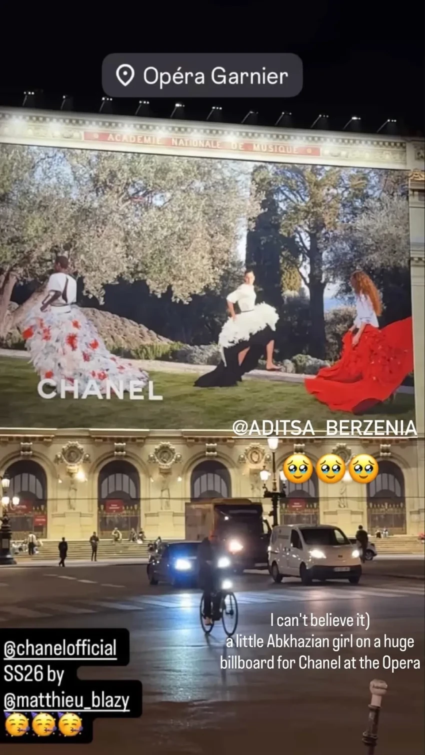 Российская модель абхазского происхождения Адица Берзения снялась в рекламе новой коллекции Chanel. С появления 24-летней Берзении начинается, например, видеоролик модного дома.