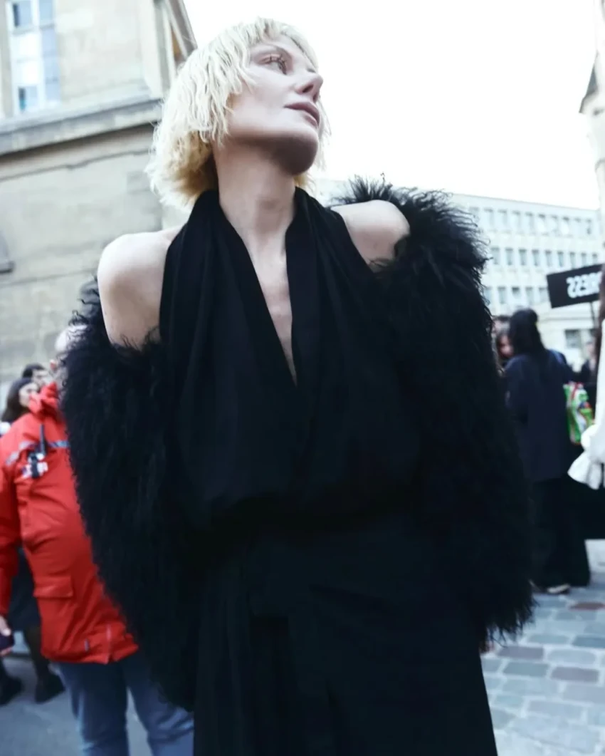 На шоу Ann Demeulemeester Литвинова пришла с каре и в чёрном платье с шубой, а на показ Jean Paul Gaultier нарядилась в винтажный плащ Paco Rabanne. На шоу Enfants Riches Déprimés, где ранее актриса выходила на подиум, она пришла в длинном чёрном платье.
