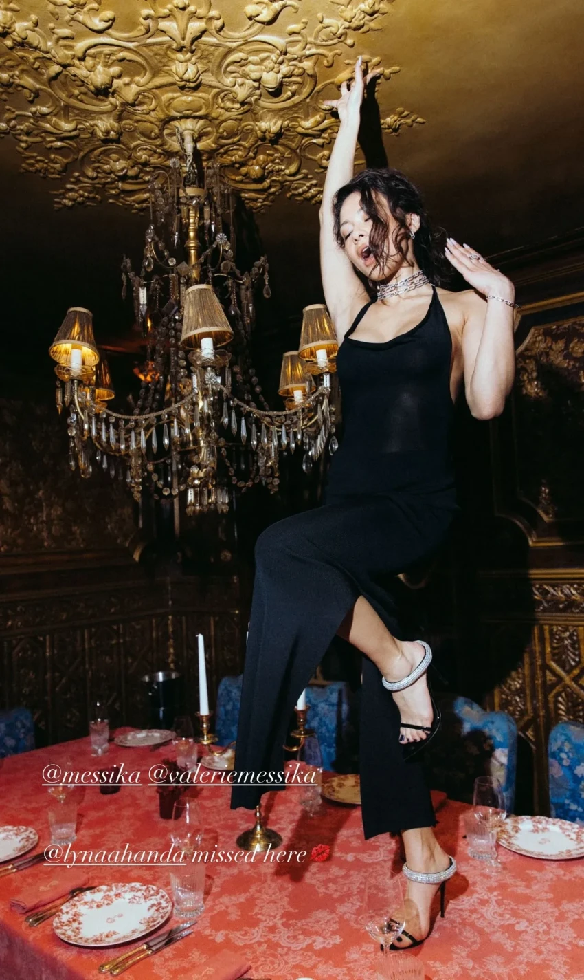 Блогерши Диана Коркунова и Алла Брулетова сходили на вечеринку, а светская львица Дарья Лисиченко в костюме из кожи посетила показ Loewe и ужин Schiaparelli. Тем временем Ксения Чилингарова пришла на шоу Chanel в твидовом костюме с мини-юбкой.