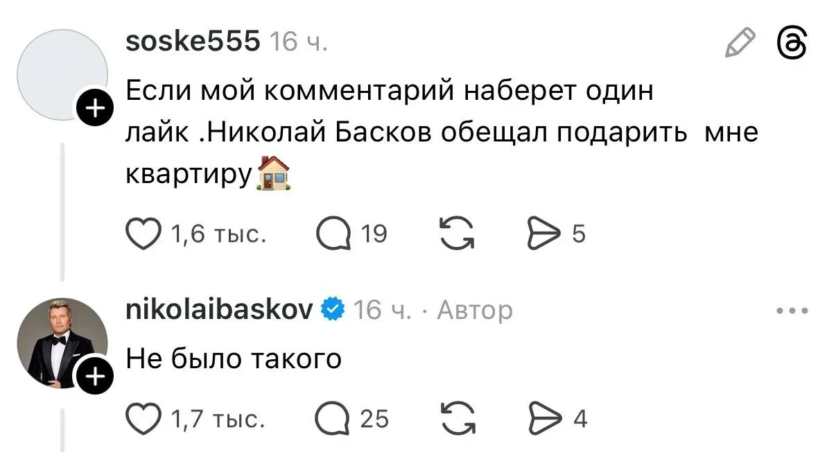 Скриншот Threads*Впрочем, многие считают, что за внезапной активностью звёзд стоят пиарщики или SMM-менеджеры. Пользователи сомневаются, что у знаменитостей есть для такого время, и подмечают различия между их реальным стилем общения и тем, как они ведут свои аккаунты. Ну а Билан, Басков и Лепс отвечают: "Вы еще скажите, что на сцене вместо нас выступают двойники".