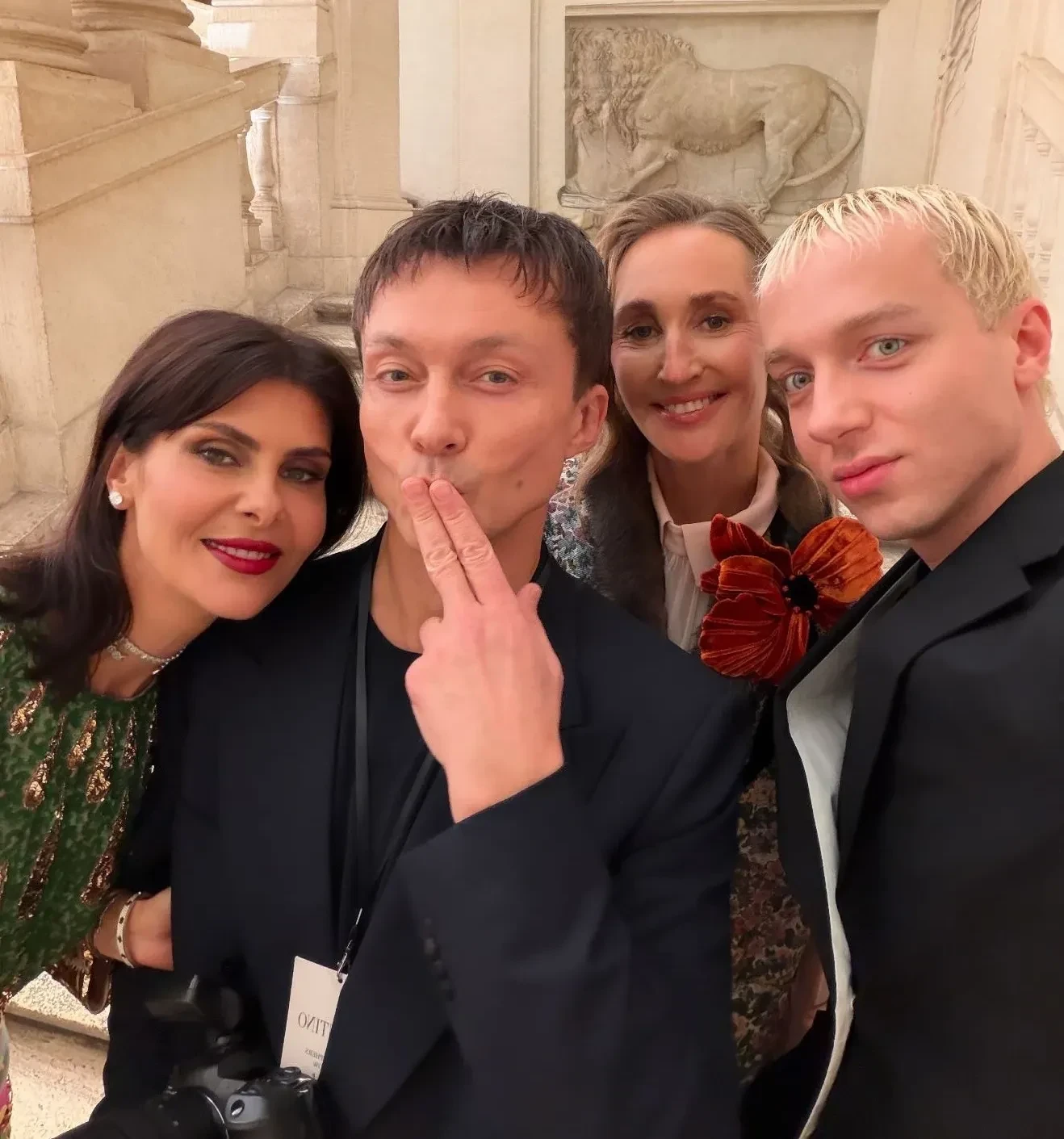 Надежда Оболенцева, Герман Ларкин, Оксана Бондаренко и Данила ЧучковНа подиум на показе осенней коллекции Valentino вышел 17-летний сын актрисы Наоми Уоттс Кай Шрайбер, который в прошлом году дебютировал на подиуме в шоу бренда.