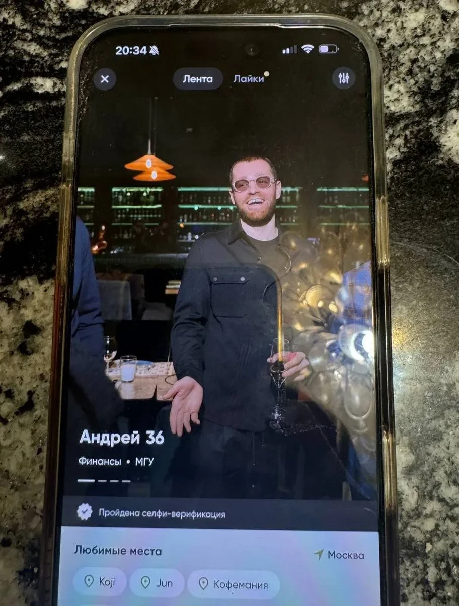 Только недавно стало известно, что у 26-летней Дианы Манасир, дочери миллиардера Зияда Манасира, новый роман — с предпринимателем Андреем Земляновым, как вдруг все уже обсуждают расставание пары. В сети обнаружили аккаунт 39-летнего выпускника МГУ в одном из дейтинг-приложений. Сомневаться в его подлинности не приходится, поскольку селфи-верификация пройдена. Помимо имени, возраста и образования Андрея там указаны любимые места бизнесмена: Сахалин и "Кофемания".