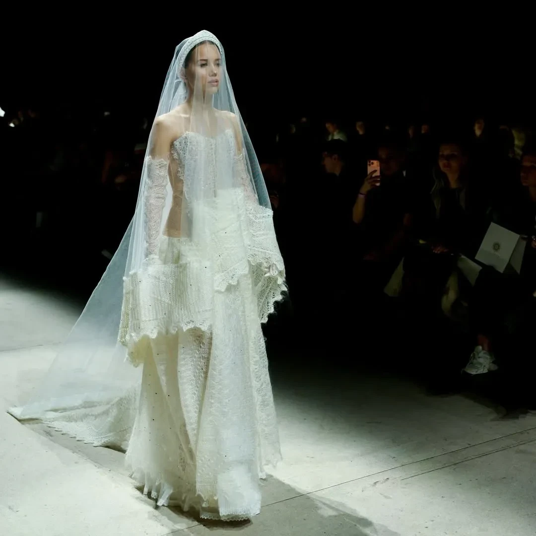 Аврора Киба в свадебном платье и внучка экс-президента Узбекистана Марьям Тилляева вышли на подиум на показе в Москве