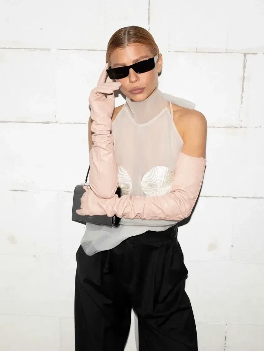 44-летняя Ксения Собчак пришла в металлизированном тренче и контрастных перчатках, а 37-летняя Мария Миногарова надела костюм из мужской коллекции Viva Vox, дополнив его массивными перчатками. 34-летняя актриса Юлия Хлынина позировала в чёрном платье с декольте и разрезом.