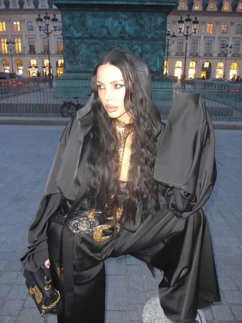 Самойлова посетила несколько модных показов и вечеринок, куда она ходила в образах Balenciaga, Schiaparelli, Saint Laurent и других брендов. На новых снимках мать четверых детей позирует в легинсах с косухой, кожаных микрошортах и корсете, кружевном боди, шубе с колготками, блестящем облегающем платье, нижнем белье и не только.