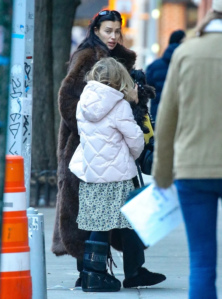 Без макияжа и в шубе: Ирину Шейк с дочерью засняли в Нью-Йорке
