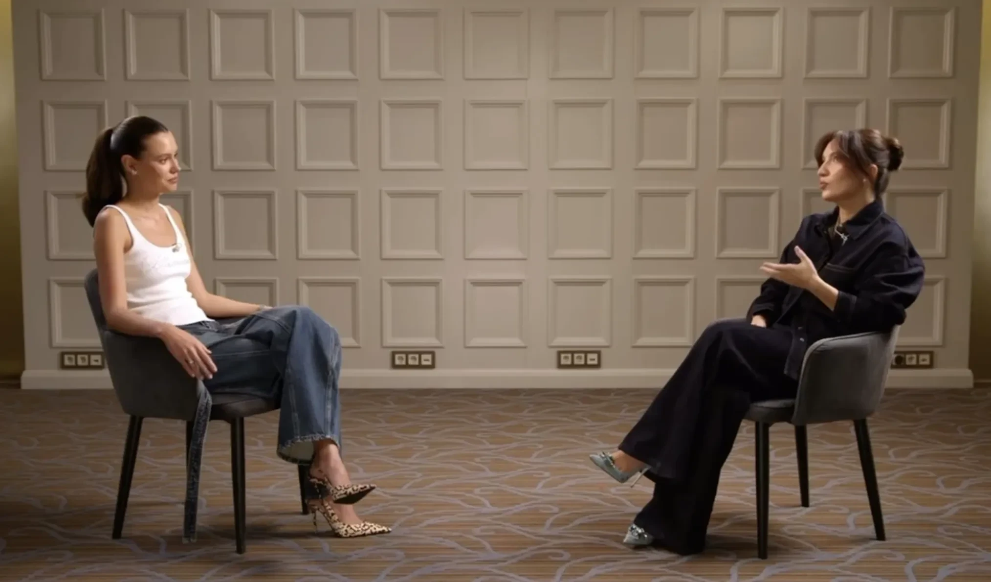 Кадр из интервью Мадонны Мур с Катей ГолденКатя Голден является известной российской моделью и основательницей бренда LUVU. Широкую популярность она получила после участия в шоу "Холостяк" в 2021 году с Тимати.