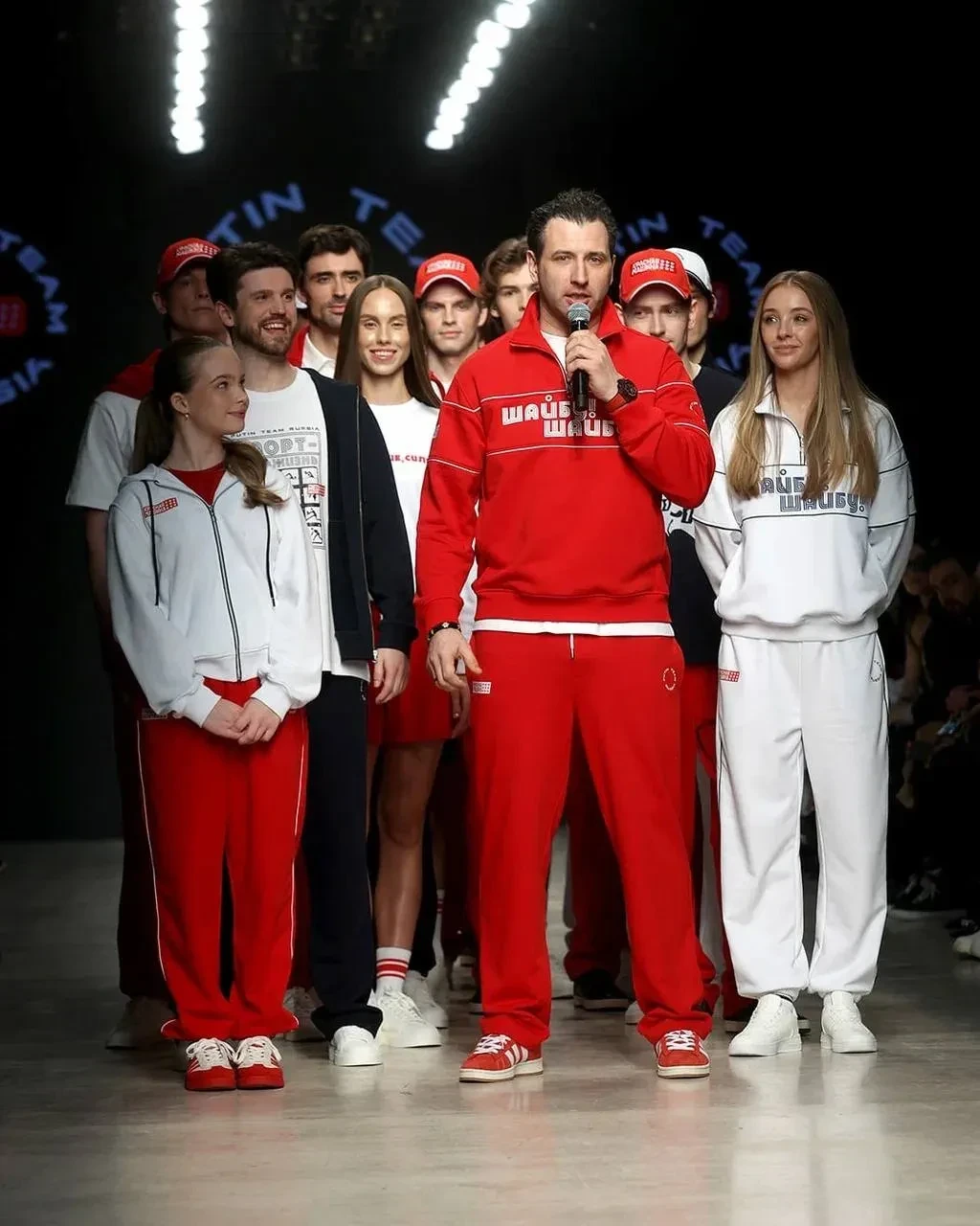44-летний Роман Ротенберг открыл показ совместной коллекции брендов "Красная Машина" и Putin Team Russia. Первый вице-президент Федерации хоккея России дефилировал в красном спортивном костюме вместе с призёрами чемпионатов Европы по фигурному катанию Александрой Степановой и Иваном Букиным, а также с другими моделями.