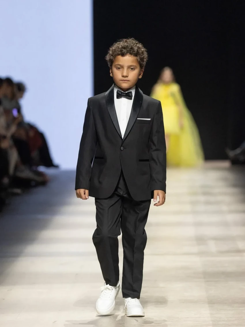 Роман РотенбергВ свою очередь, восьмилетний Андрей Манасир, как и многие другие дети известных родителей, принял участие в шоу бренда Sasha Kim. Мальчик, которого из зала поддерживала мать Виктория Манасир, продемонстрировал на подиуме классический чёрный смокинг с бабочкой.