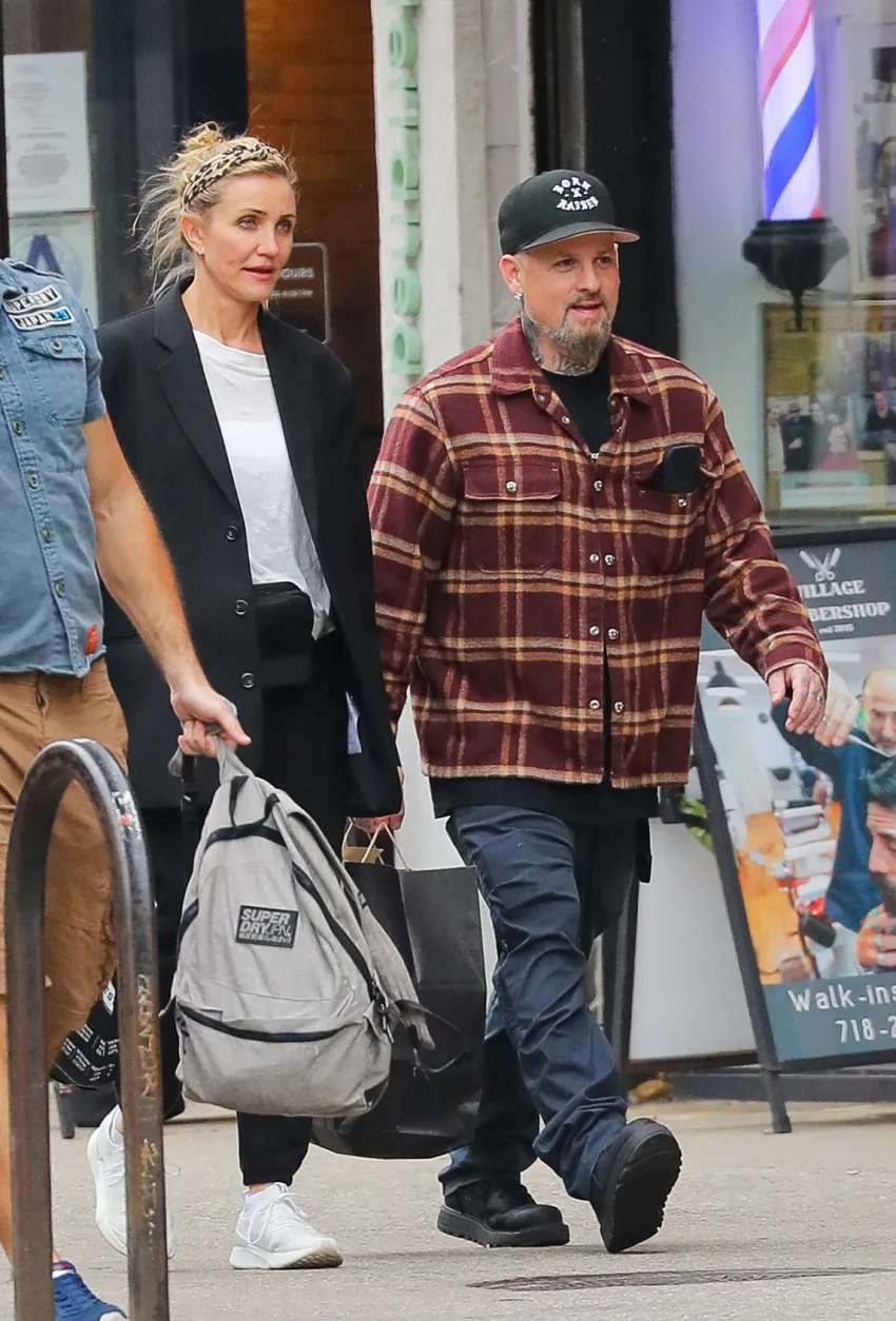 Кэмерон Диас, которая лишь недавно вернулась в кино после перерыва, связанного с рождением детей, засняли в Нью-Йорке в компании её мужа — музыканта Бенджи Мэддена. 53-летняя актриса (практически без макияжа) с супругом устроили прогулку по улицам города.