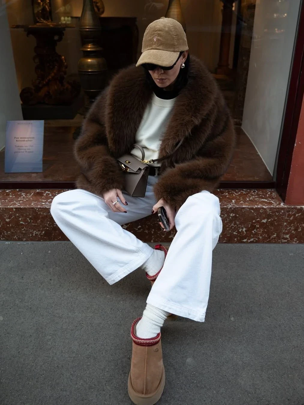 Контрастная шуба + спортивные брюки