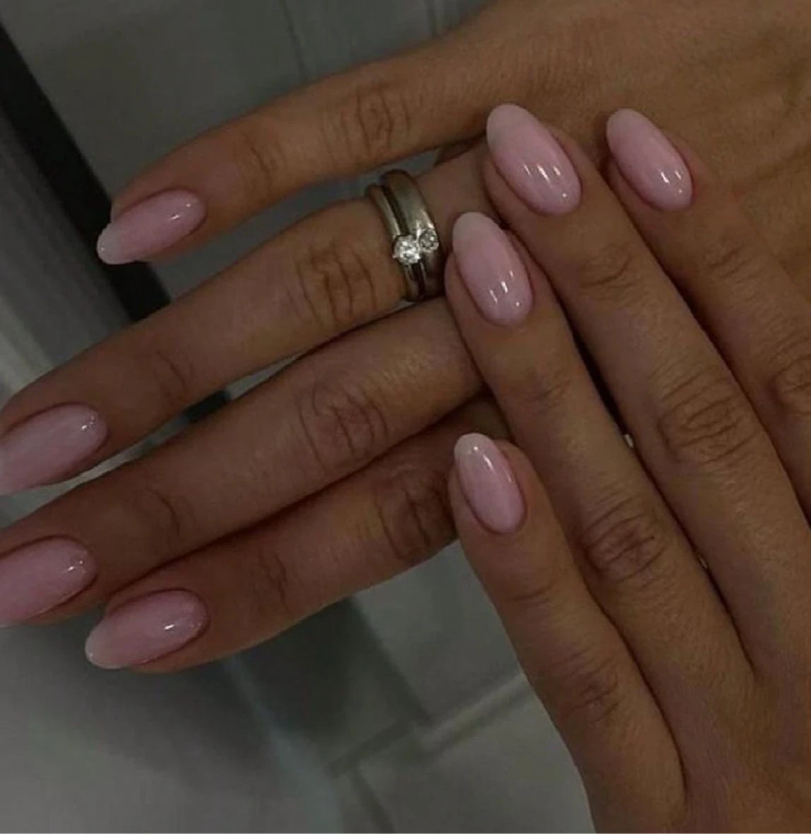 Секрет тренда — в тонкой игре полутонов. За основу берется молочное покрытие, поверх которого добавляется прозрачный розовый оттенок, словно лак слегка разбавили клубничным сиропом. В результате ногти выглядят так, будто подсвечены изнутри: нежно, чисто и очень дорого.