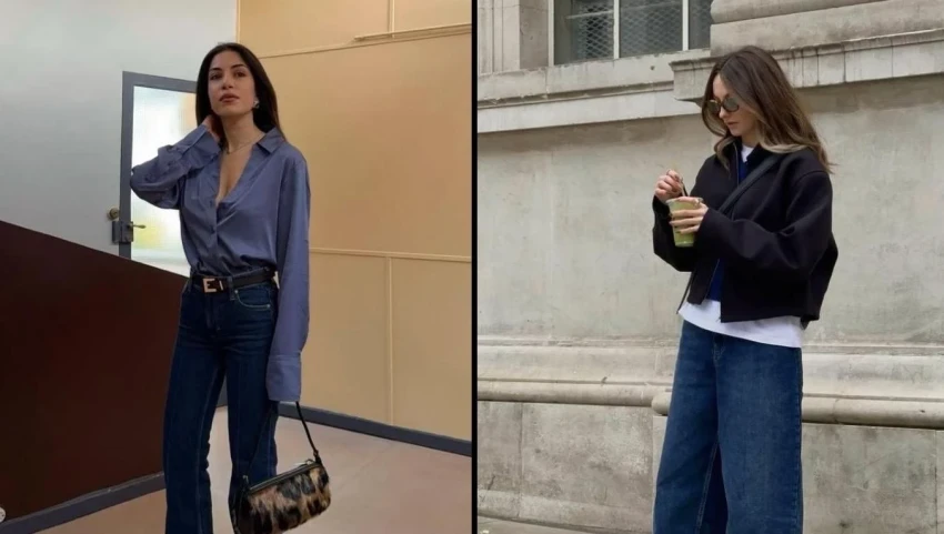 Расклешенные джинсы снова в моде, но в более деликатной версии. Это уже не драматичный клеш из эпохи диско, а аккуратное расширение от колена, которое выглядит элегантно и современно.