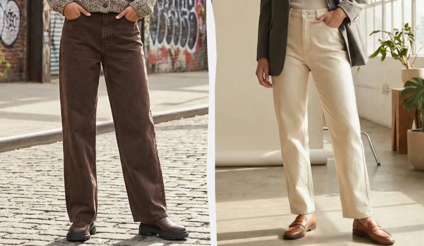 Синий больше не единственный фаворит. В 2026 году деним «теплеет» — в моду входят натуральные оттенки, которые делают образы мягче и благороднее.