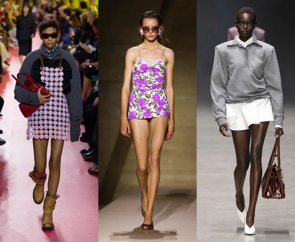 Короткие юбки и мини-платья возвращаются в арсенал. Стайлинг: мини + объемный верх (оверсайз свитер, худи, куртка). Баланс — ключ.