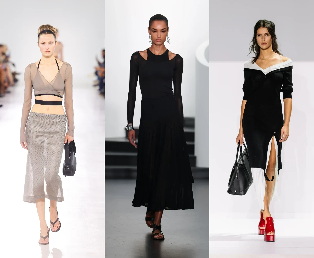 Платья, вдохновленные танцем, будто ловят движение. Джерси мягко повторяет силуэт, создавая эффект пластичности и свободы. Мода больше не про жесткие формы — она про тело и его естественный ритм.