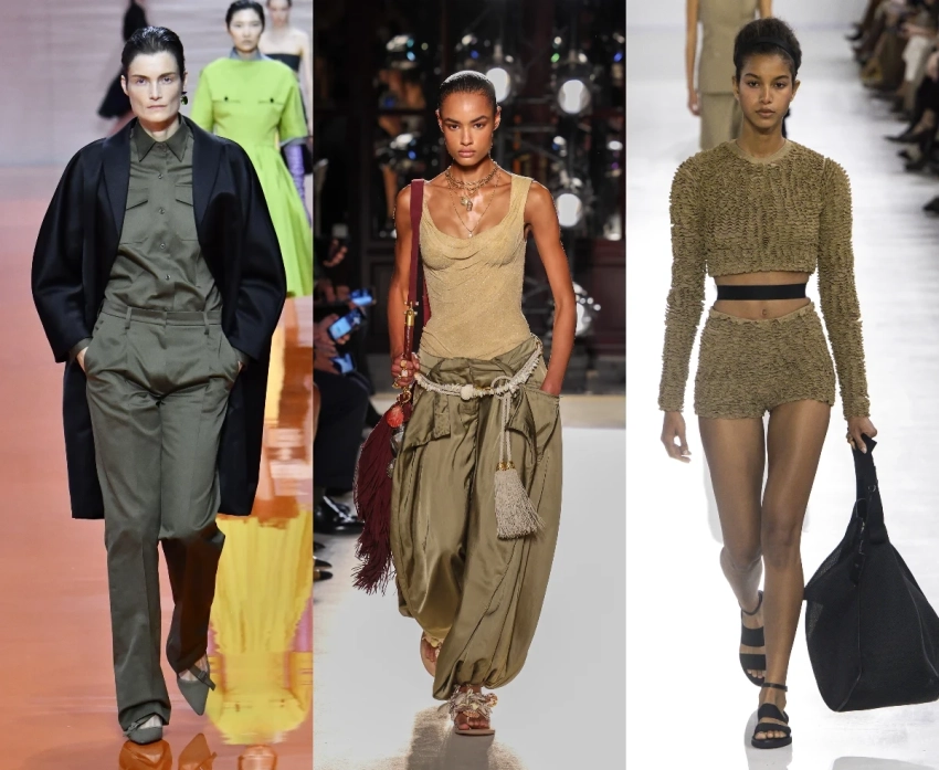 От оливкового до песочного — хаки стал той самой практичной гаммой, которой не хватало последние годы. Он легко сочетается и с классикой, и с богемой, и с минимализмом.