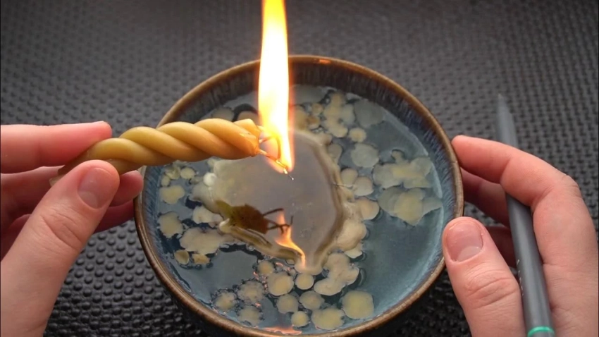сначала он смягчается под пламенем свечи, затем в воде превращается в послания судьбы.